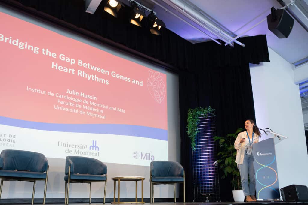 - Julie Hussin, PhD a présenté « Bridging the Gap Between Genes and Heart Rhythms », une conférence illustrant comment la génomique couplée à l’intelligence artificielle permet de mieux comprendre la variabilité électrophysiologique du cœur.