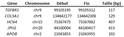 Le tableau suivant résume les régions correspondantes à des duplications segmentales parmi nos profils :